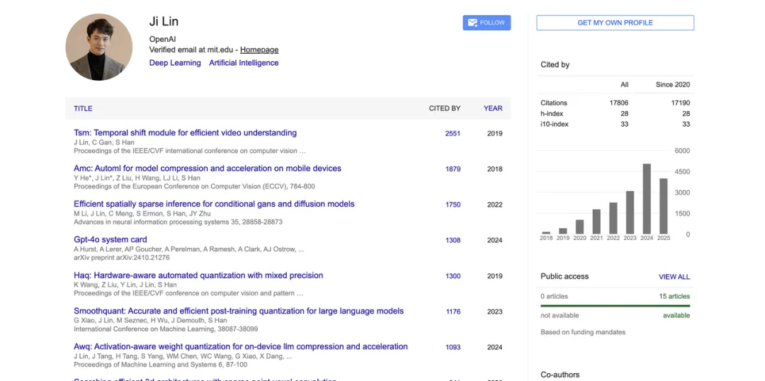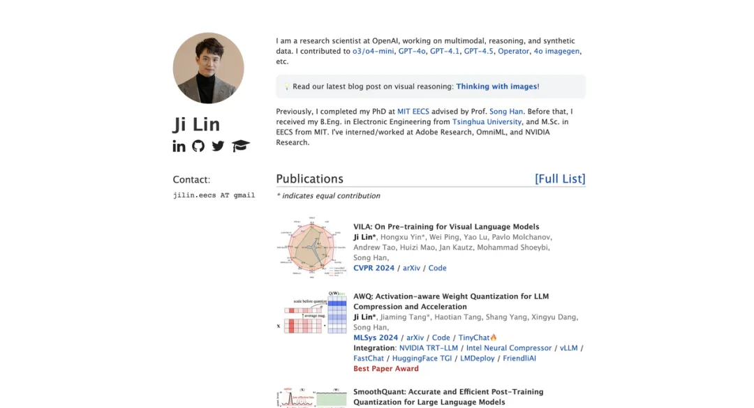 在2023年加入OpenAI之前,他曾在英伟达、Adobe和Google担任实习研究员,并在MIT长期从事神经网络压缩与推理加速相关研究,积累了深厚的理论基础与工程实践经验。