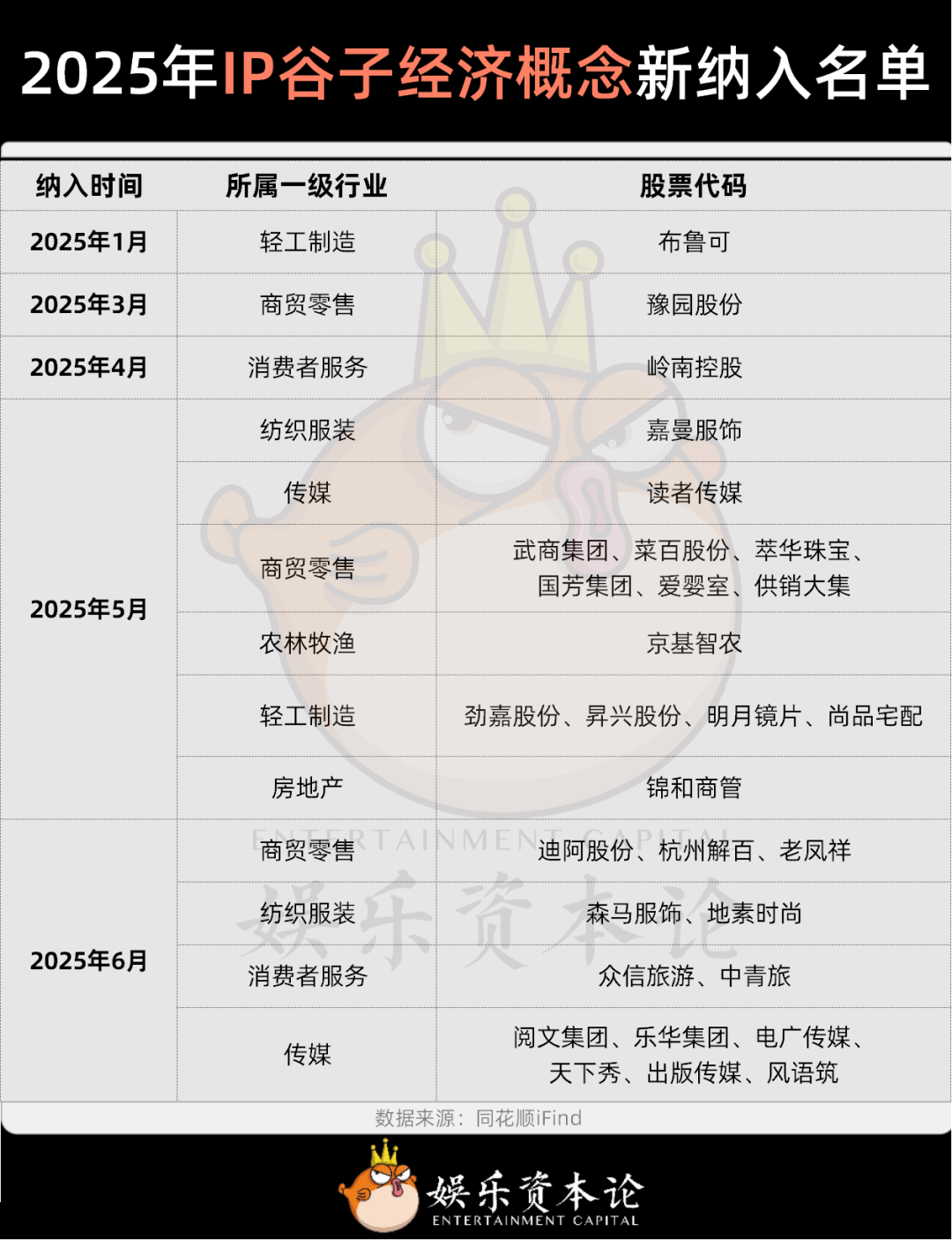 图8 2025年IP谷子经济概念新纳入名单,数据来源:同花顺iFind