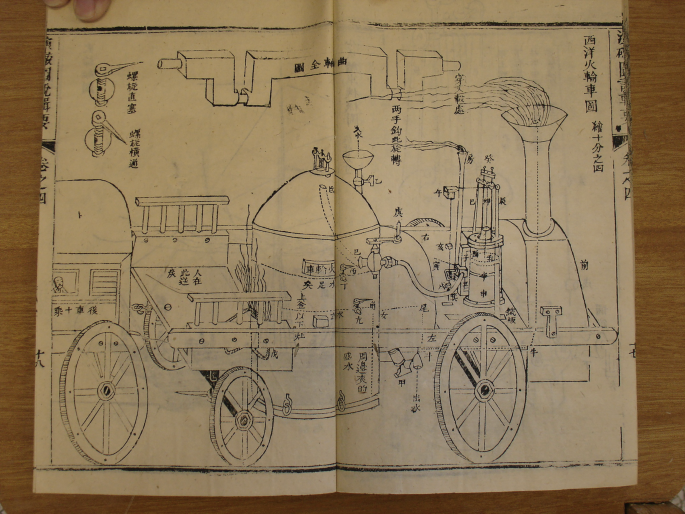 它来自1841年丁洪辰所著《演炮图说》第四卷第十五页,且标题明确标注这叫“西洋火轮车图”。