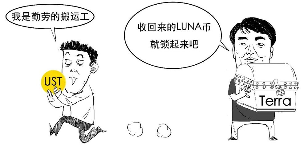 就这样,市场上的UST币数量不断被销毁而减少,LUNA币的数量不断被铸造而增加。