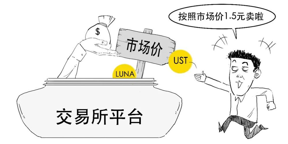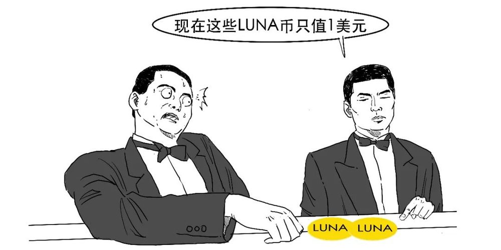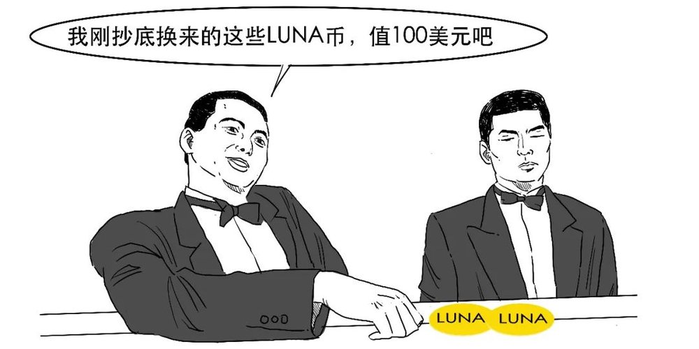 这个人再利用terra公司提供的互换机制,把1个UST兑换成市场价格为1美元的若干LUNA币。