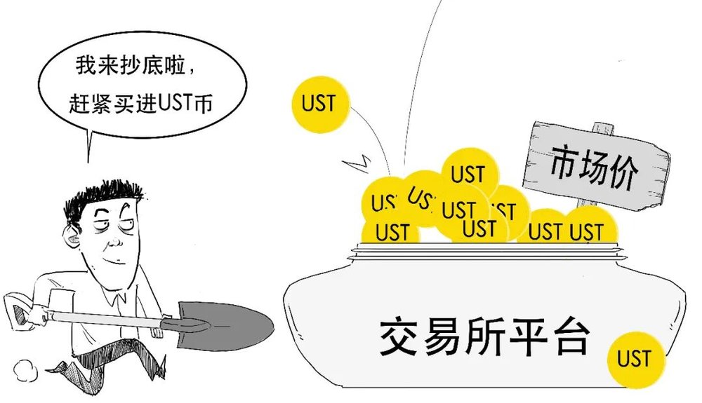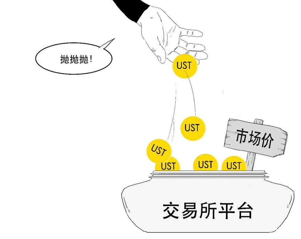 同时,UST是作为基于LUNA的稳定币,也越不被看好,UST也就越不值钱。