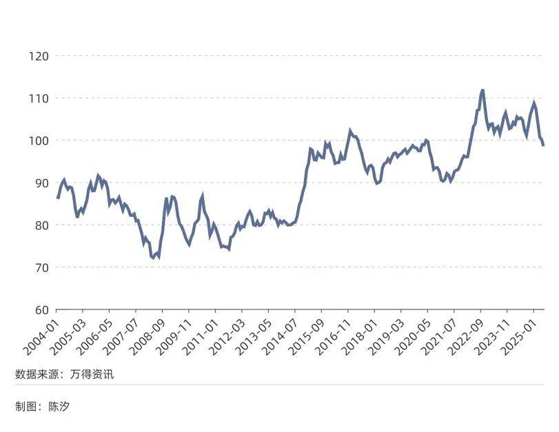 图3: 美元指数(2004年1月~2025年6月)