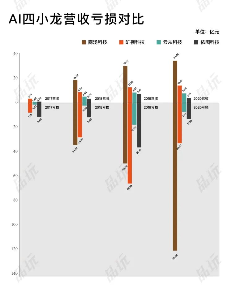 备注:报告期内,商汤科技2021年的数据截至6月30日;旷视科技2020年的数据截至9月30日;云从科技2020年的数据截至6月30日;依图科技2020年的数据截至6月30日