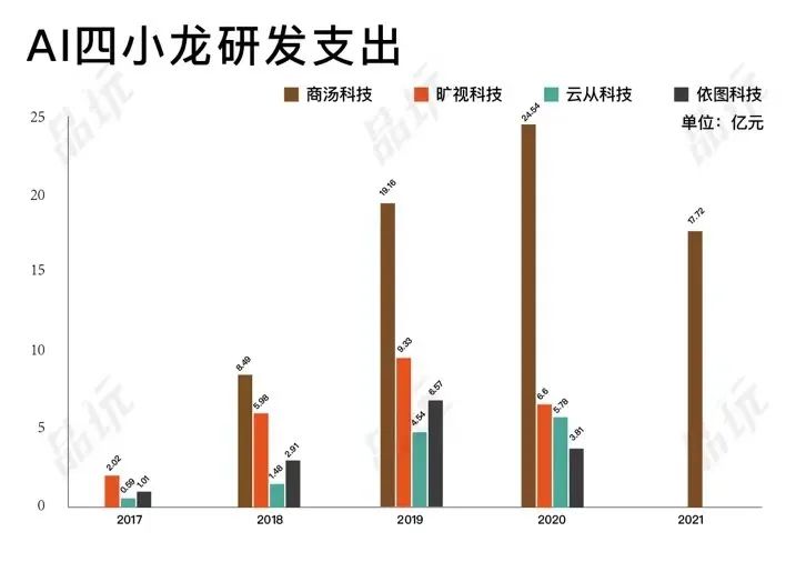 备注:报告期内,商汤科技2021年的数据截至6月30日;旷视科技2020年的数据截至9月30日;云从科技2020年的数据截至6月30日;依图科技2020年的数据截至6月30日;