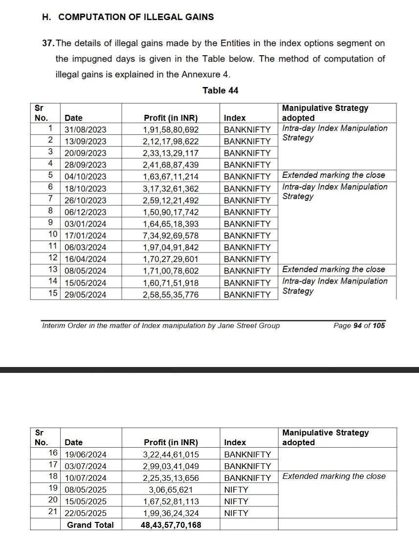 同时这份文件也坐实了之前“简街在印度大赚特赚”的传言。监管披露,2023年1月至2025年3月期间,简街在印度衍生品及现货市场交易中累计获利约3650亿卢比(约合人民币306亿元,或43亿美元)。