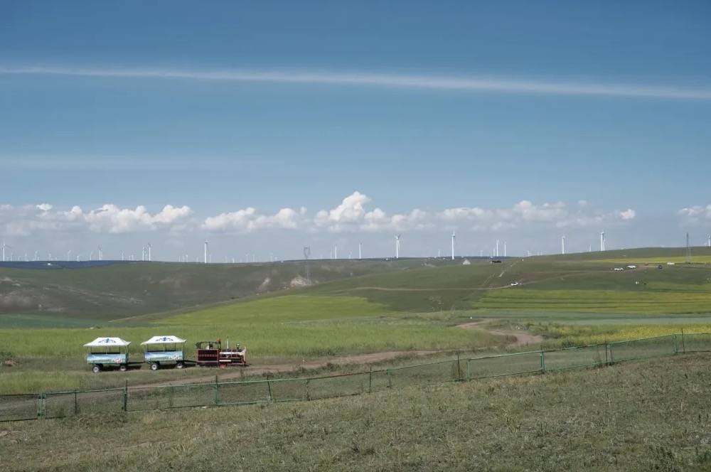 在辉腾锡勒草原上,能看到百米高的白色风车,修建于此的辉腾锡勒风电场,也是亚洲最大的风力发电场。巨大的风车叶片随着风缓缓转动,给草原增添了浪漫的氛围。