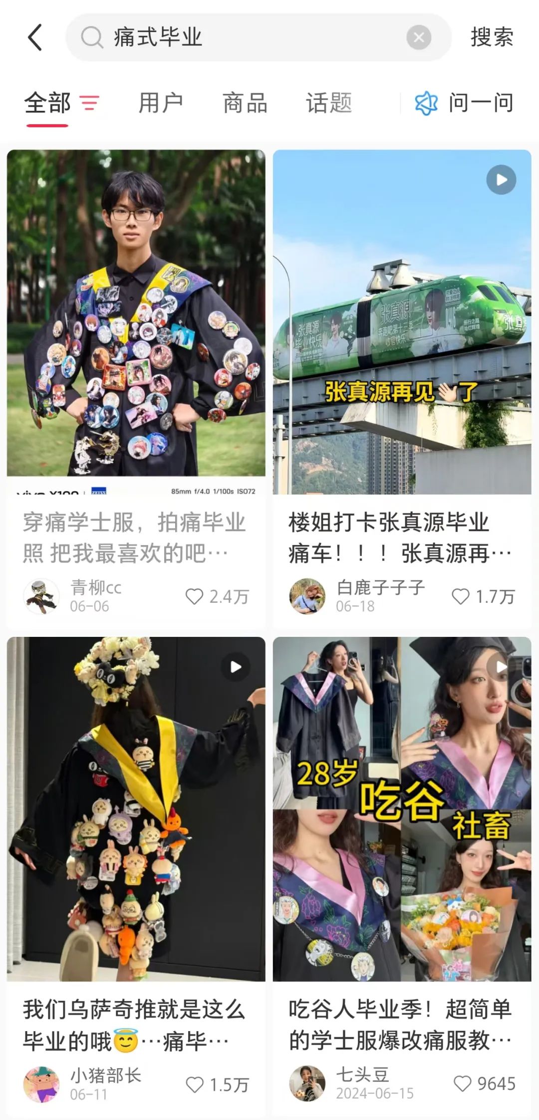 短短一个半月,小红书站内就涌现出近万篇相关笔记,近7000 万用户围观“簪谷学士服”,关键词条搜索量同比增长了 30 倍。