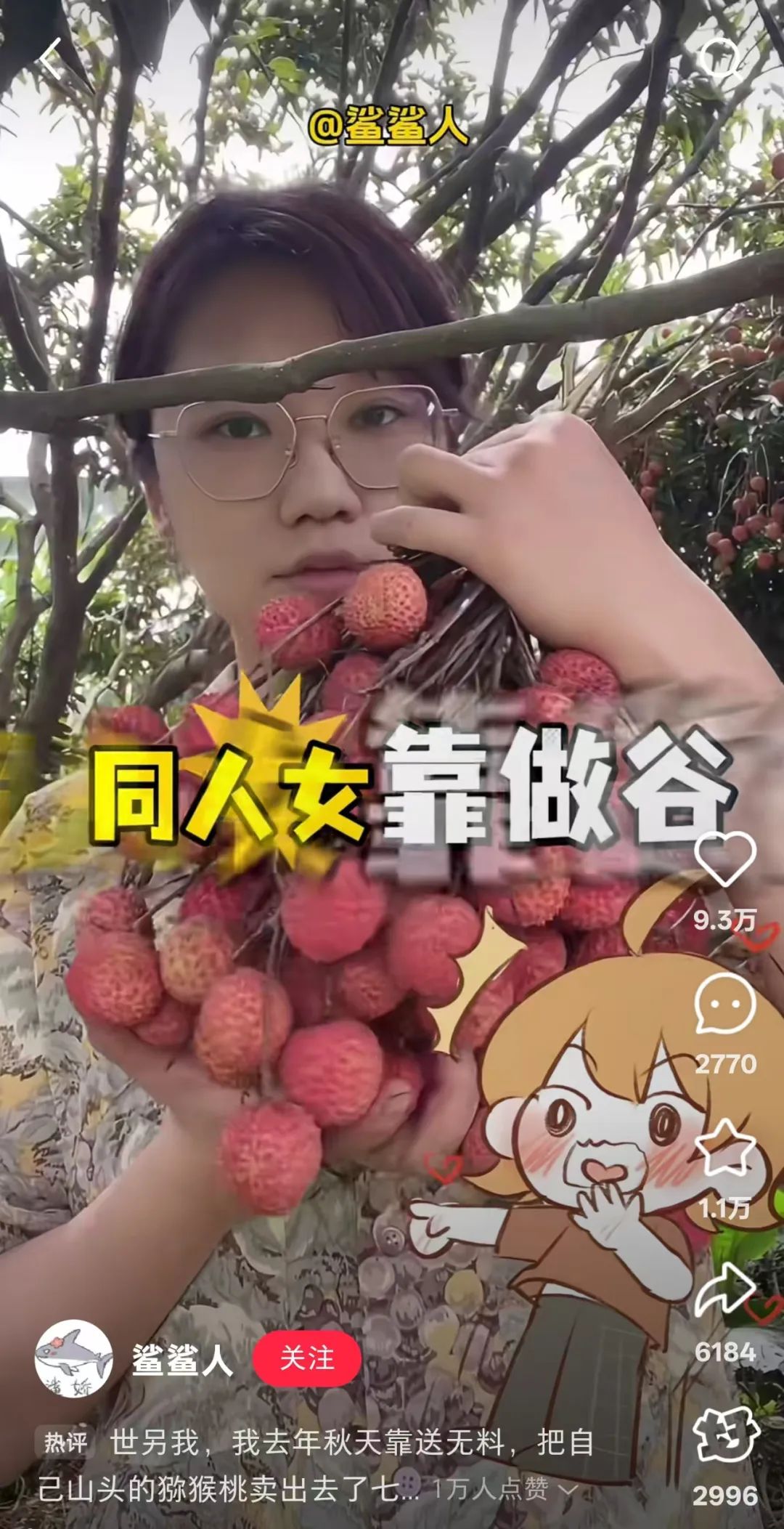 1994 年出生的博主@鲨鲨人,大学专业是视觉传达,是资深“二次元”。但与我们所理解的传统二次元概念不同,鲨鲨人不仅以制作系列“谷子”为职业,还用做谷子的技能,帮八十岁的爷爷卖空了两千斤荔枝。她的故事在小红书一经发布便迅速走红。