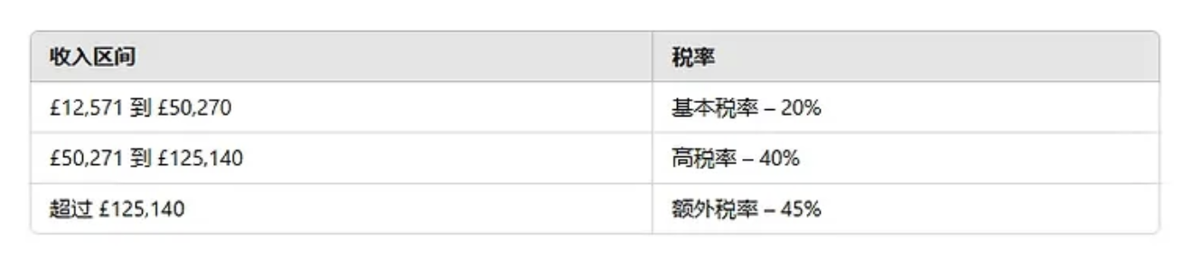 在个人所得税上,个人免税额为12,570英镑;12,571~50,270英镑为20%;50,271~125,140英镑为40%;125,140英镑以上为45%,实际最高边际税率为60%。