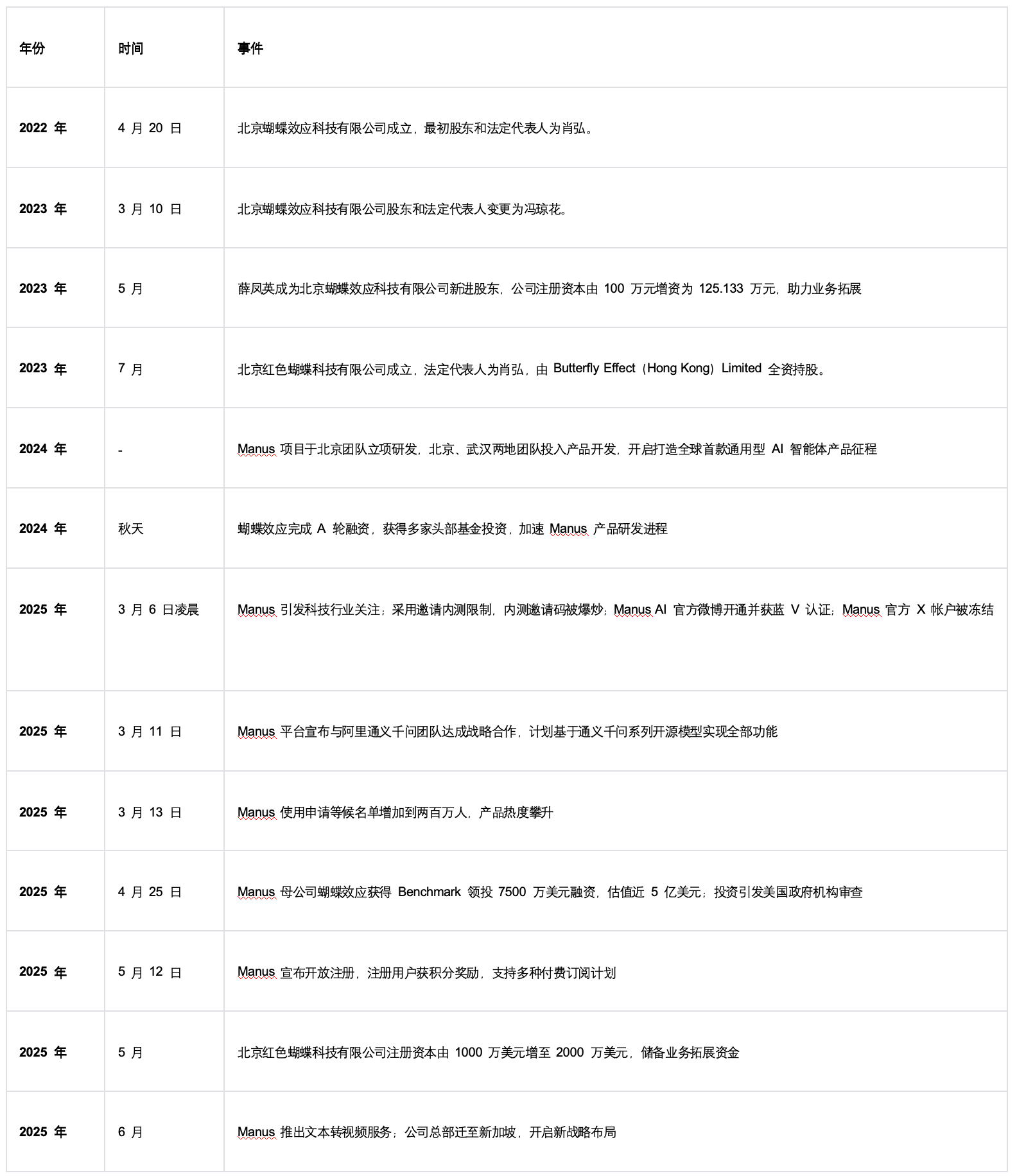 Manus发展时间线 虎嗅根据公开资料整理