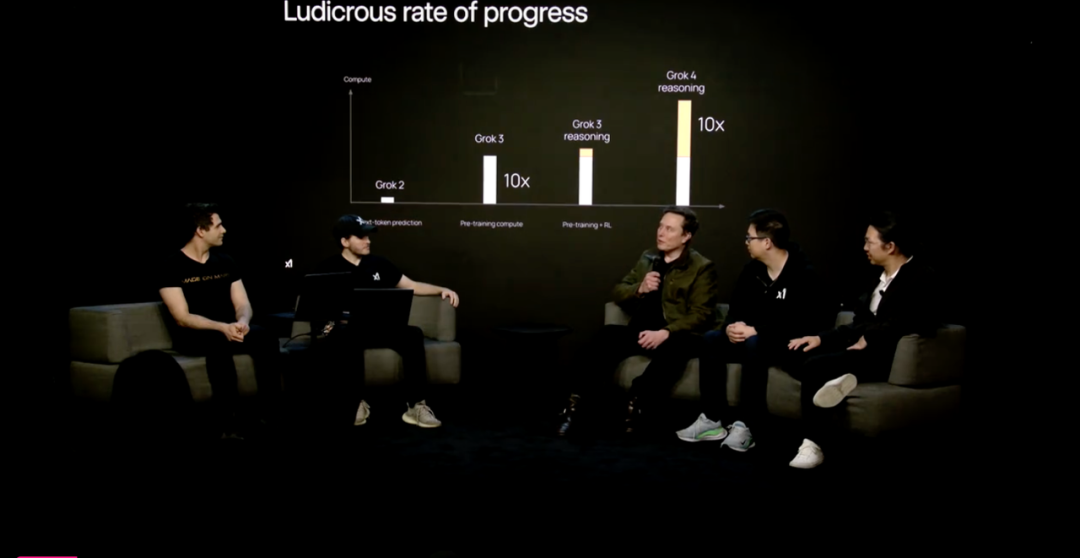 相比Grok 2,Grok 4的训练计算量提升了整整两个数量级,相当于增长了100倍——而且还在持续扩张。