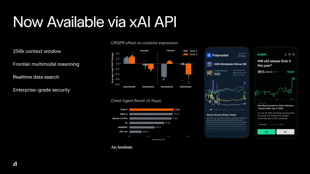 在科研领域,Grok 4已被用于CRISPR基因研究和胸片X光分析。它能在几秒钟内读完几百万条实验记录和日志,自动筛出最有可能成功的假设。