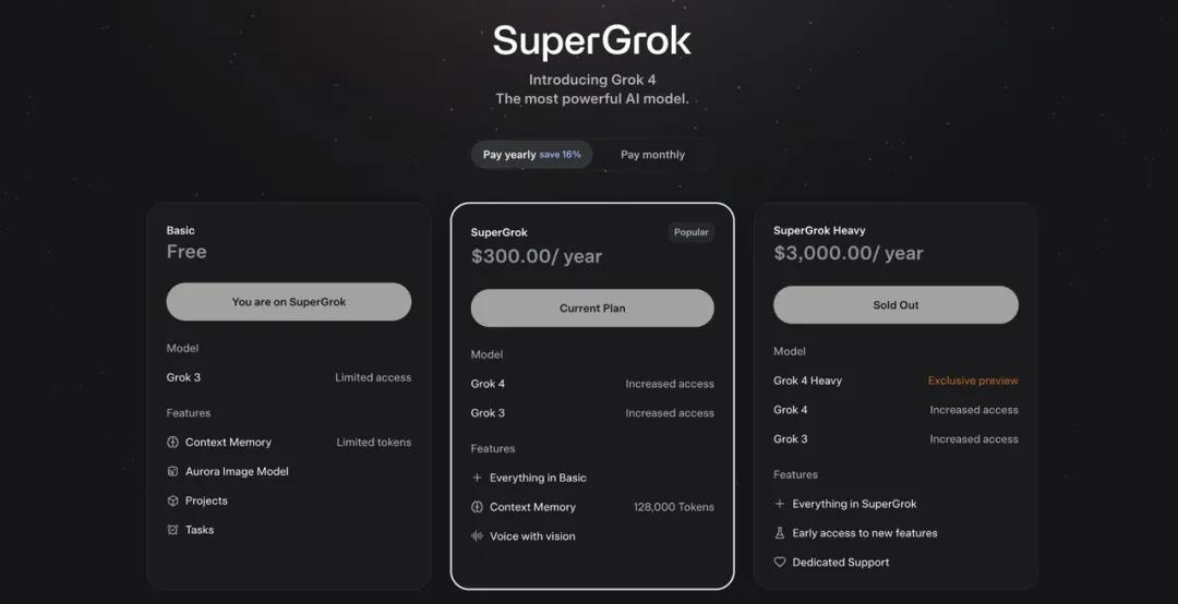 至于Grok 4能不能配得上“最聪明AI”的称号,还得看后续的实际体验。不过,有一点是跑不了的——它已经成了市面上最贵的AI,年订阅价格最高可达到3000美元,定价策略可谓是相当不讲武德。