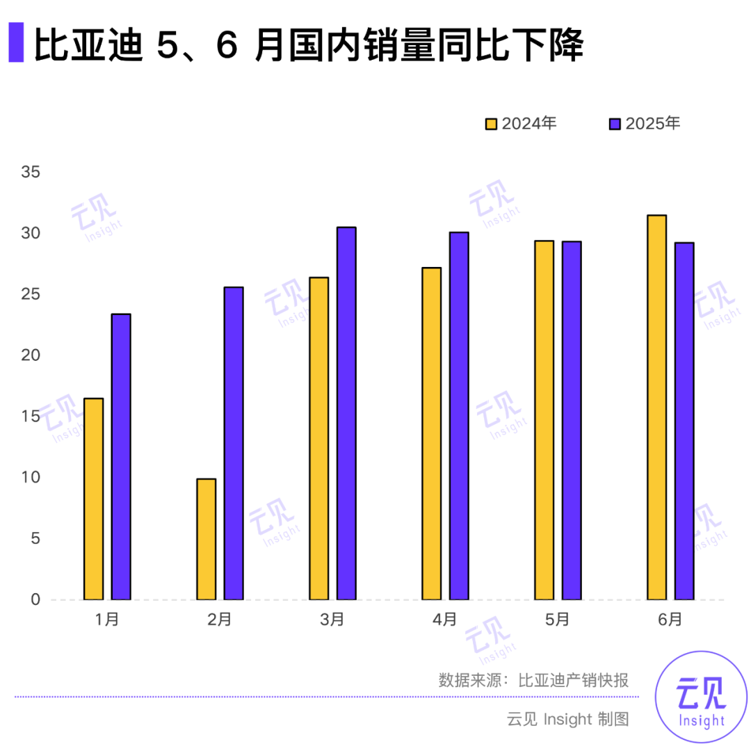 过去 2 个月,如果刨除海外市场的影响,比亚迪在国内的销量连续同比下降。