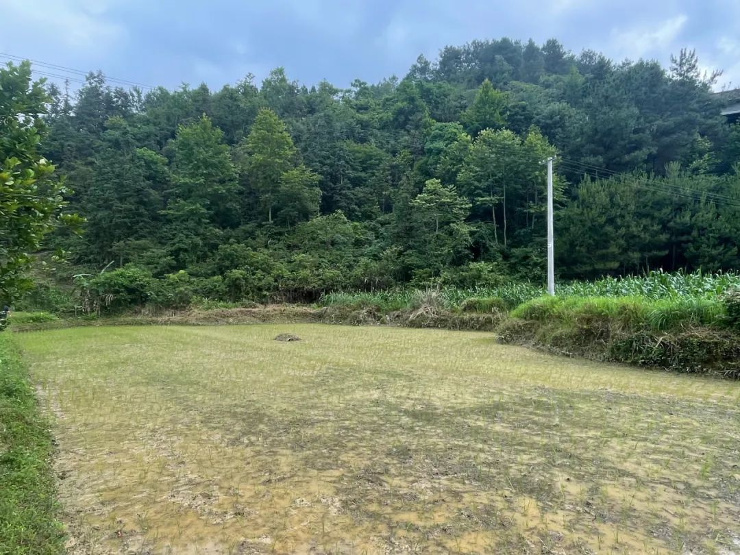 这是我来之前插完的最后一块田,因为刚插的秧苗还很小,看不太清楚,但再过十多天就会绿油油的了。