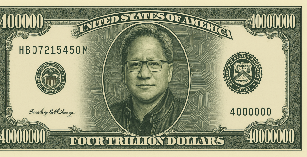 7月9日,英伟达市值首度超过4万亿美元,图片由AI生成