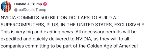 特朗普在社交媒体上称加快向英伟达发放出口许可