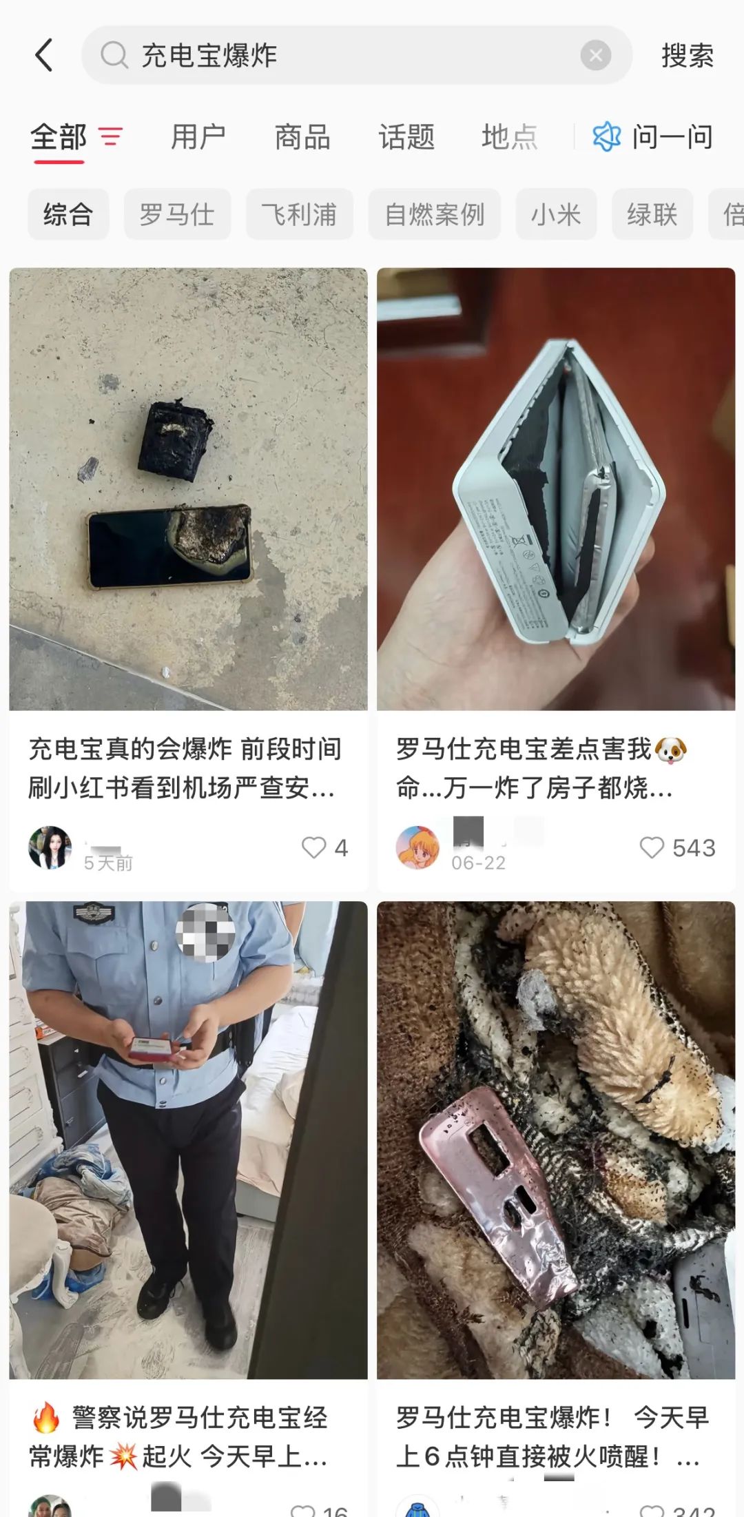 伴随着铺天盖地的新闻和热搜,各个社交平台上也出现了大量网友们上传的充电宝爆炸的图片、视频,黑乎乎一团,触目惊心,而症状轻一些的,比如鼓包、开裂的图片也到处都是。