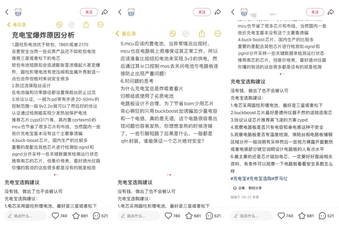 一个小小的充电宝,也得拿出12分的认真程度,看攻略、刷推荐、问朋友,网上都在教,买充电宝不仅要看3C标识,还得学会看额定能量、额定容量、输出功率等参数,学会分辨材质,比如买安装了锂聚合物、车规级电芯的充电宝更安全。甚至有人会去查品牌企业的生产信息,研究电芯的来源和批次,避免出现将生产外包上游工厂进而偷工减料的问题。