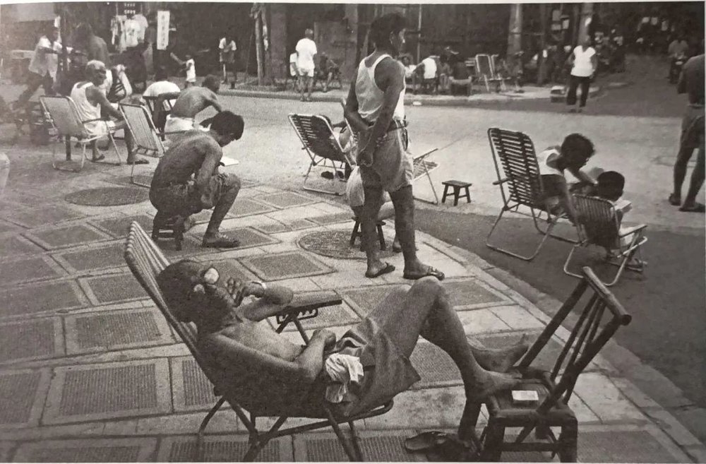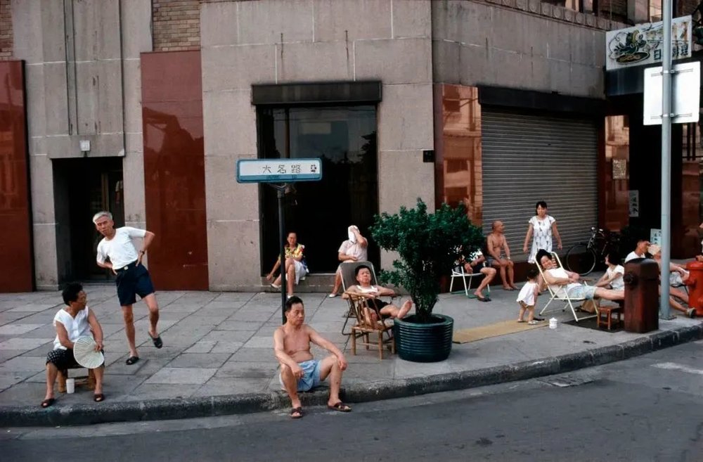 荷兰摄影师罗伯特·凡德·休斯特1990年到1993年来上海拍摄的时候,在南京路拍到了乘风凉的人。“11点的南京东路很热,人们住在非常小的空间里,没有空调,所以他们整晚待在那里。”