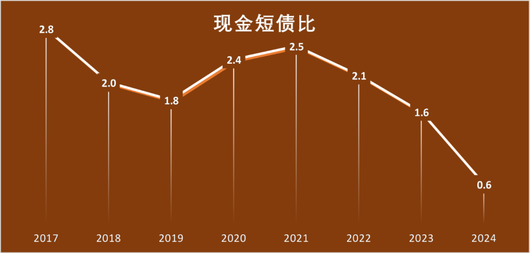 现金短债比则在2023年迅速恶化,降到了监管规定的1以内,这都不叫踩中了,这叫一脚踏空红线。