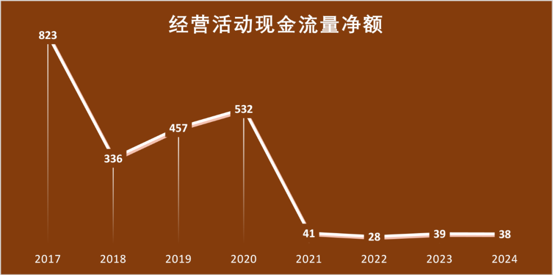 其投资活动在2023年之前除2020年外都是净流出的情况,也许是感受到了极大的现金流压力,万科在2023年和2024年都在积极处置资产回收资本,典型如卖掉了效益最好的上海七宝万科广场。投资活动现金流量净额连续2年为正,且2024年甚至回收了超过百亿。
