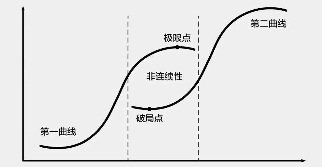 第二曲线理论由英国管理思想大师查尔斯·汉迪在1997年提出。理论提到当企业发展到一定阶段,很容易遇到增长瓶颈。存量业务见顶、边际收入递减预示着第一增长曲线由盛转衰,即使借助精耕细作、降本增效等管理手段也收效甚微,因为当行业整体接近极限点时,越是坚守本业,越是容易陷入困局。
