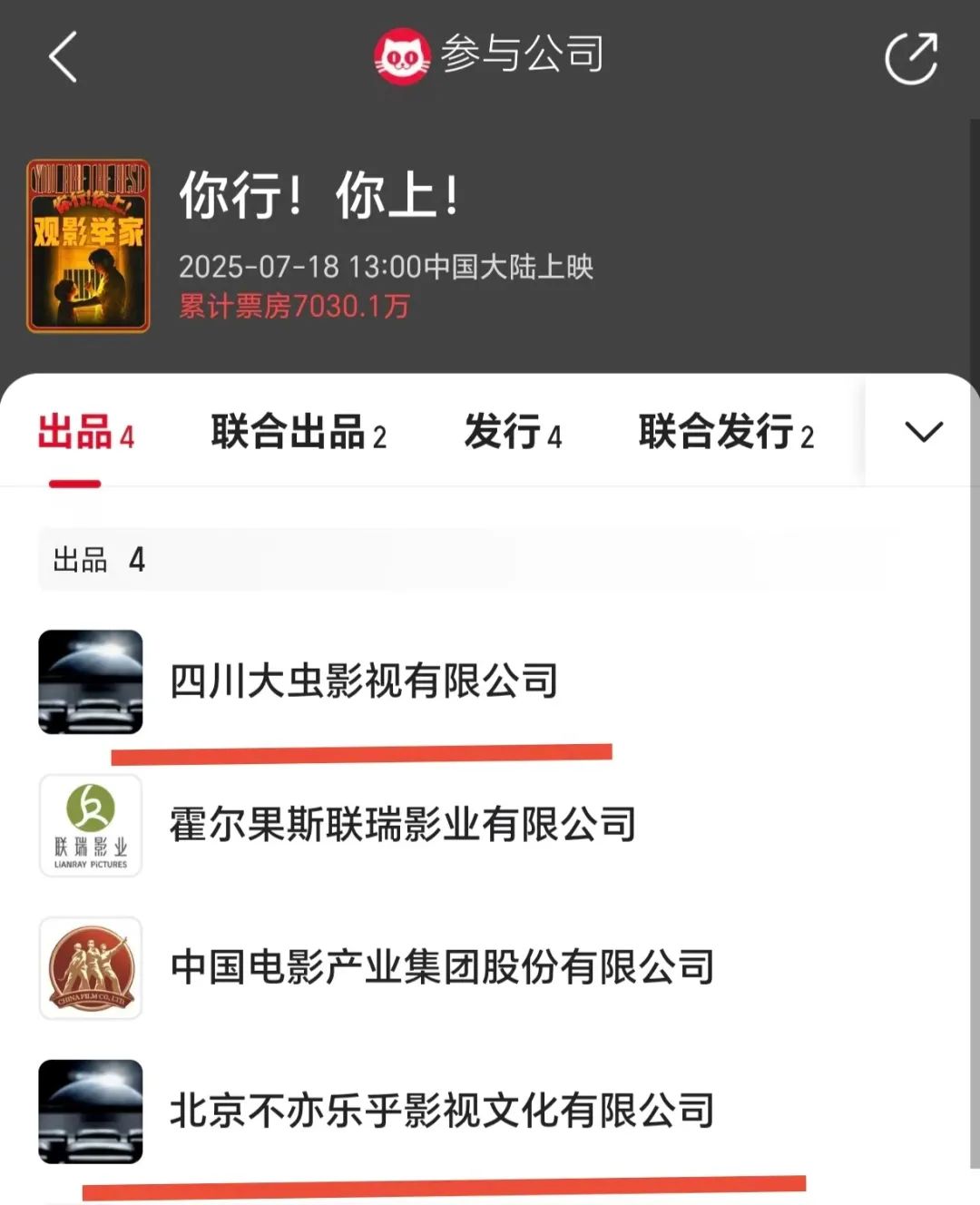 北洋三部曲均有精细的打磨过程,不惜斥资造城搭景、多次推翻剧本、邀请巨星参演;而《你行!你上!》只剩赶工与敷衍 —— 原本堪称其视觉符号的苍茫寂静空镜在本片中寥寥无几,曾让他引以为傲的、对贩夫走卒的鲜活刻画,在膨胀的创作欲中只剩断片残影。我们从影片资本结构中不难找到答案:唯一的制片人是其夫人,四家出品公司中两家由自家牢牢掌控。换句话说,这部片子已成了他的独角戏。