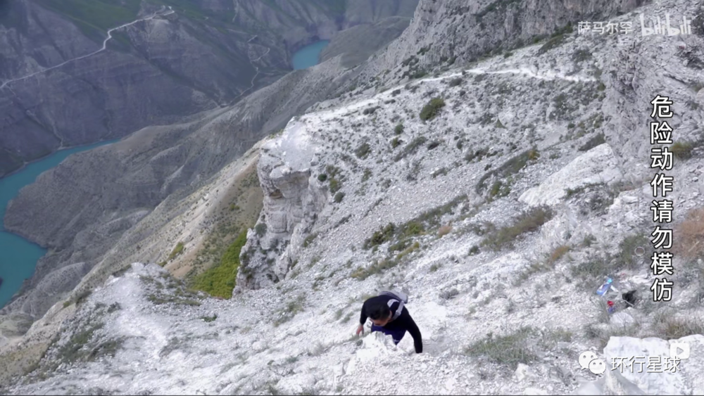 达吉尔的朋友想必经常来此,只见他身手敏捷地从峭壁间一路小跑到一块向峡谷外突兀出去的岩石上并且示意我也过去看看。我则小心翼翼,因为确实一旦失足就真的跌入万丈深渊了。待我走近他所在的地方,往下一瞧,对于有恐高症的我真的是倒吸一口凉气。