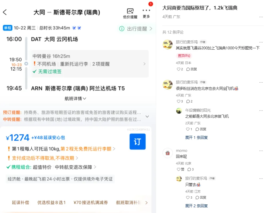 但这恰恰也是大同眼下的考题:真要变长红,一方面要继续争取好政策,另一方面也得继续让更多游客涌入,让航司有真金白银的生意做。