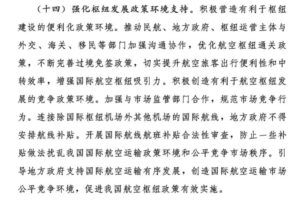 要知道去年8月,民航局和发改委联合发布《推进国际航空枢纽建设指导意见》,里面明确写了:“连接除国际枢纽机场外其他机场的国际航线,地方政府不得安排航线补贴。”