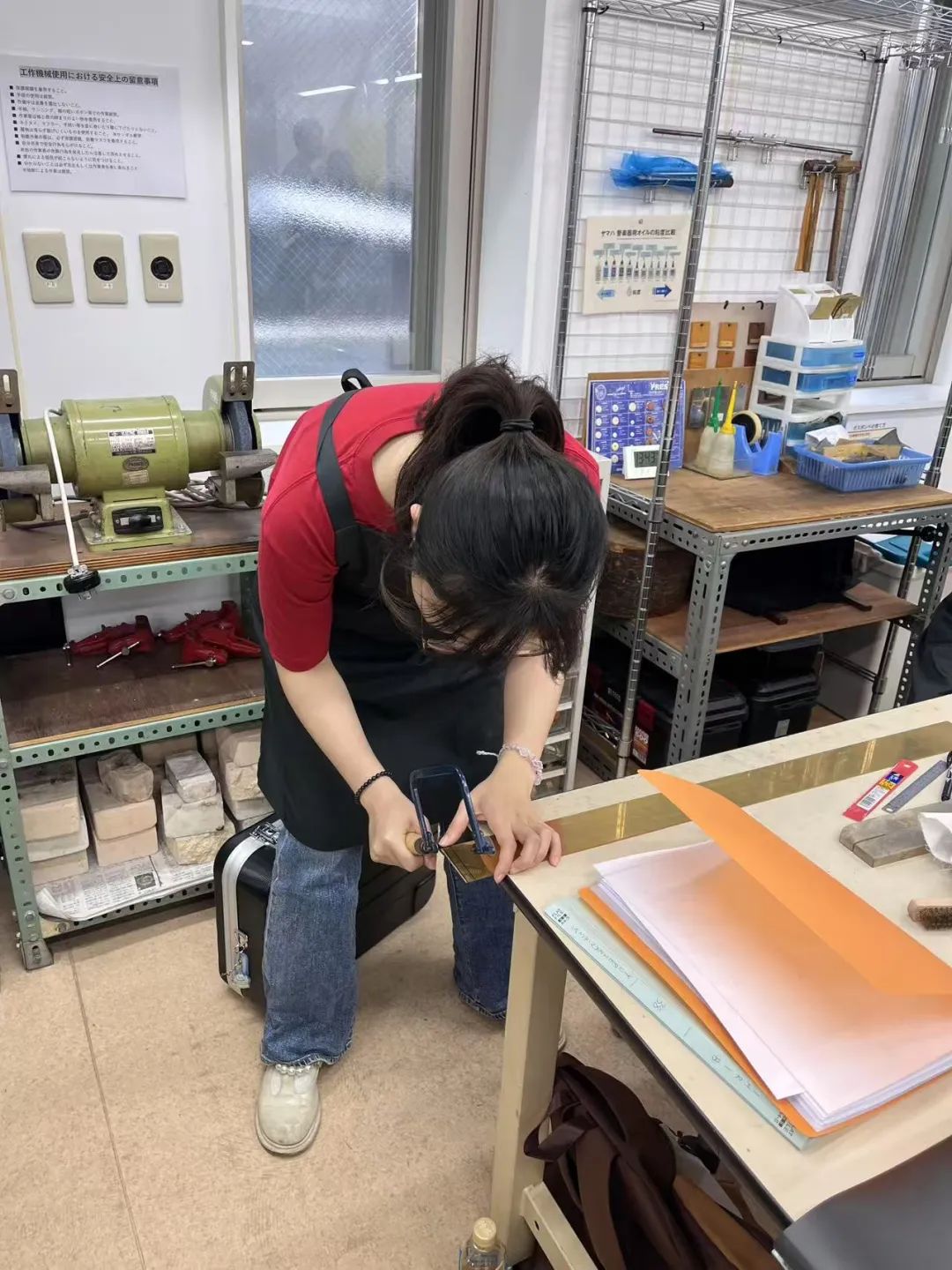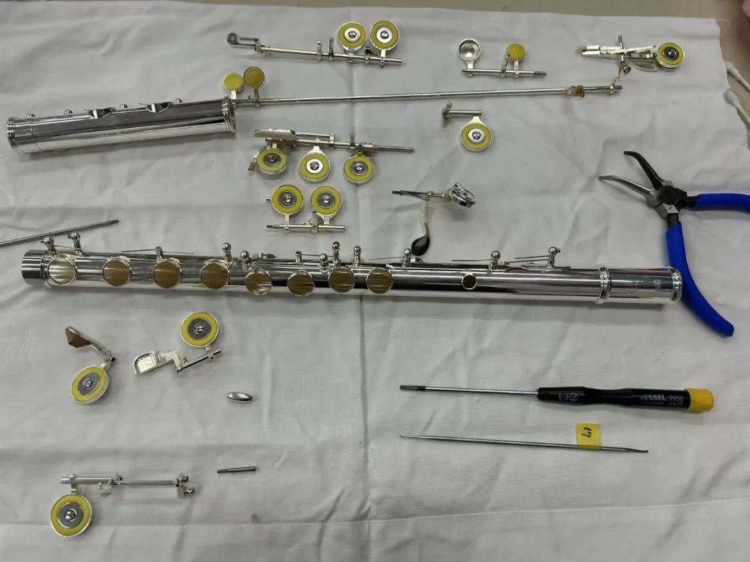 因为她之前就有演奏管乐的基础,所以学习的是管乐器的修造。除了乐器理论课和演奏技巧、乐器品牌相关的知识学习,以乐器调整和维修为主的实践课占据了很大的分量。她的维修实践课老师都是来自日本各个乐器厂和工作室的、有着15年以上经验的专职人员。