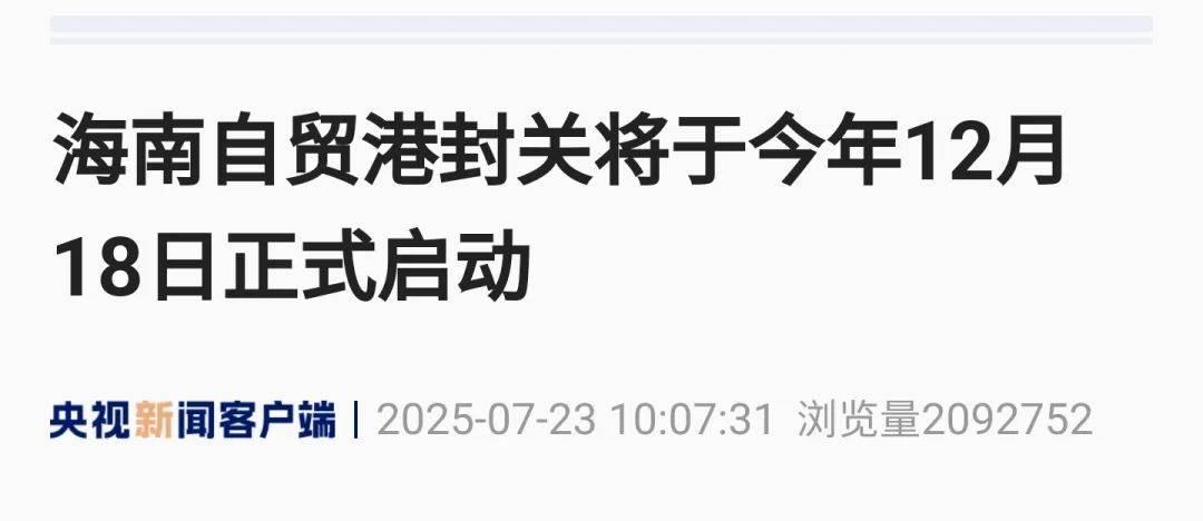 据官方透露,海南自贸港全岛封关将于今年12月18日正式启动,将实施以“‘一线’放开、‘二线’管住、岛内自由”为基本特征的自由化便利化政策制度。