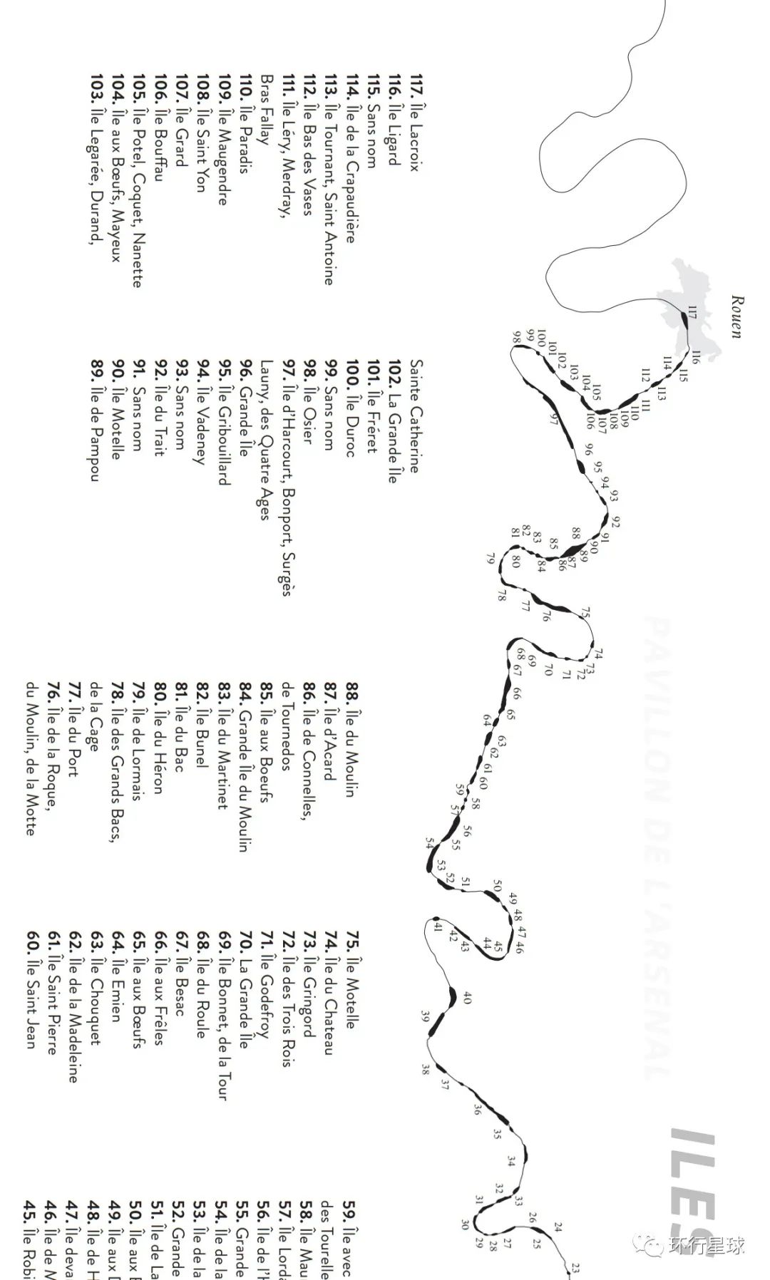 塞纳河沿线的117个岛屿组成了一个浮动的、零散的、默默无闻的领土。如果我们把塞纳河⽐作⼀根丝线,那些岛屿就串成了一条珠珠不同的项链。