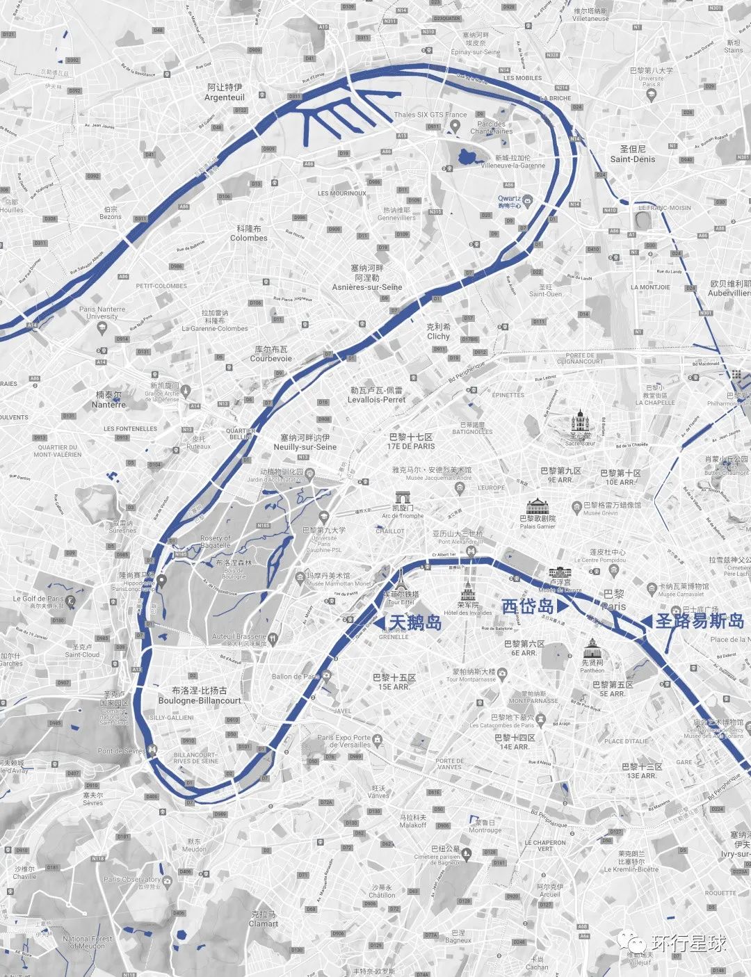 塞纳河上的117座岛屿示意平面图(在图中找到巴黎 Paris)