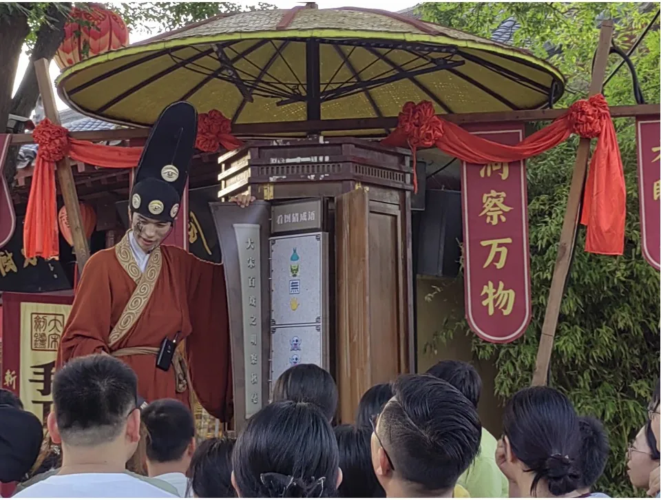 无论是NPC还是游客,主打一个“没有舞台也能自己加戏”。有网友分享,自己和摇骰子的NPC互动,银票输光了就去“报官”。等衙门的人把他们的“钱”收缴后,游客可以直接从衙役手里抢银票。“记得要跑快点,不然被衙役抓到了会被押着游街。”