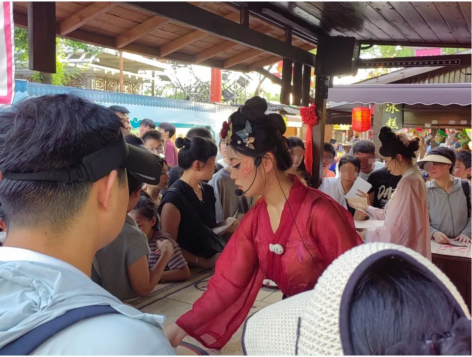 40°C的高温天,清明上河园的路边不断喷出水雾帮助降温,干净的洗手间外还设置了有空调和座椅的休息区。今年清明假期,万岁山武侠城节目预约系统崩溃致游客抱怨,于是园区增加了无需预约的打铁花表演。而在“只有河南”戏剧幻城,如果游客生理期突然到访,可以免费领取卫生巾和红糖水。这些细节,都被网友们看在眼里,总结进了旅游攻略里。