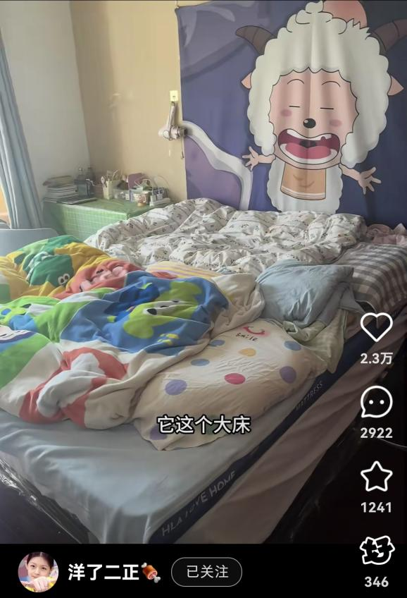 洋洋将和室友拼床合租的经历发到社交平台上,图源受访者@洋了二正