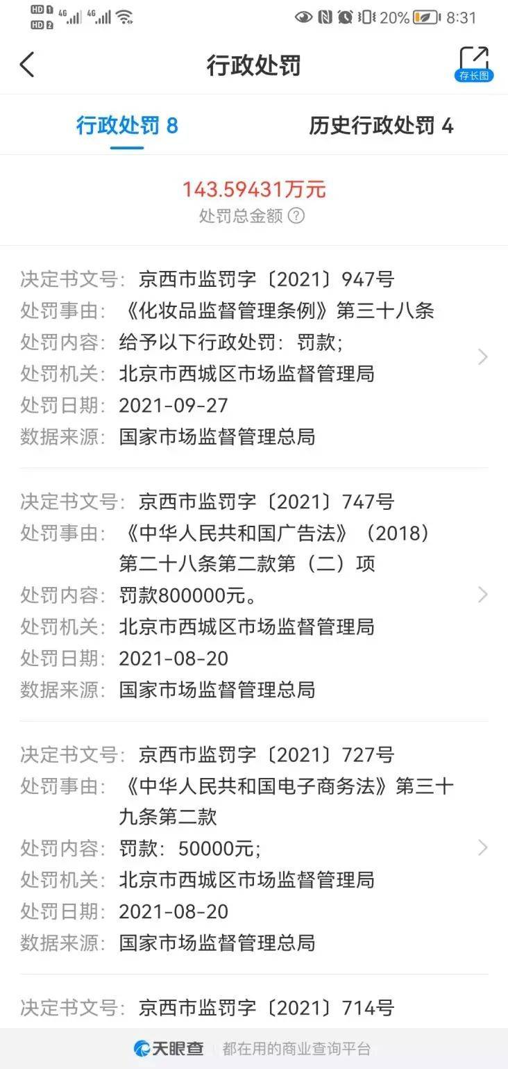 一则天眼查信息显示,就在上月,北京寺库商贸有限公司还因违反《化妆品监督管理条例》第三十八条,被北京市西城区市场监督管理局罚款1万元。主要违法事实为:当事人在“寺库奢侈品”手机软件上发布一款香奈儿精华水,其提供的进货来源材料无法与举报人购买的该件商品对应。且当事人无法提供该款商品的其他进货查验记录和相关凭证,未建立并执行进货查验记录制度,未查验供货者的市场主体登记证明、化妆品注册或者备案情况、产品出厂检验合格证明等情况。