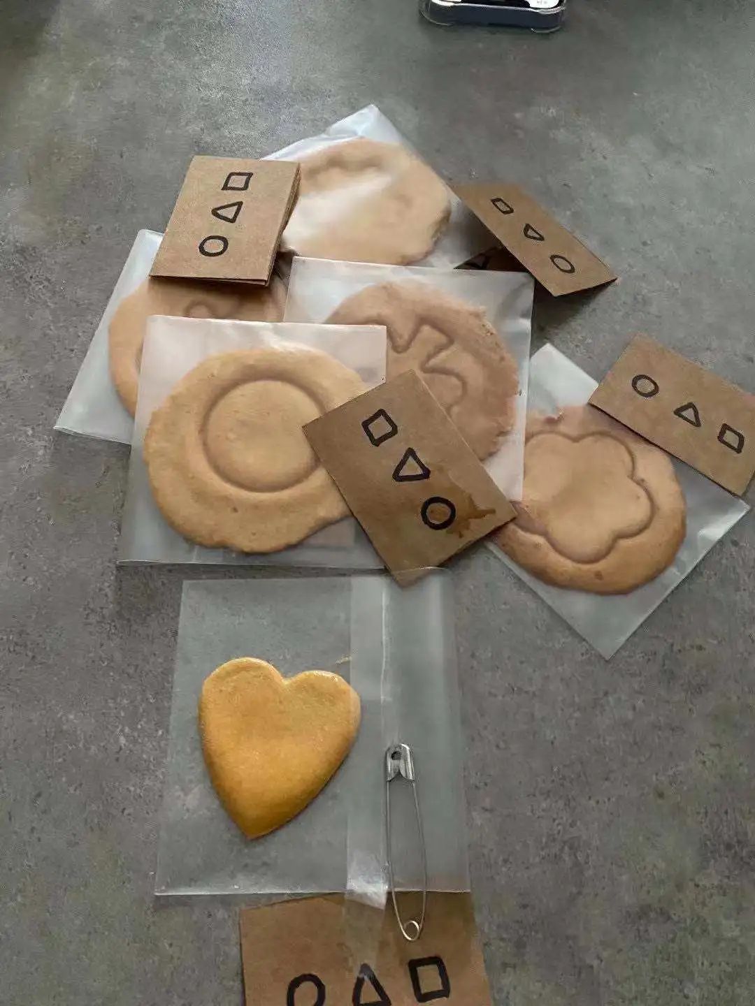 在Netflix热门剧集《鱿鱼游戏》中,第二关就是抠椪糖,参赛者在不知道游戏的前提下盲选圆形、三角形、星星和雨伞四个图案,规定时间内用针抠出完整的图形便能过关,败者则会被枪杀出局。