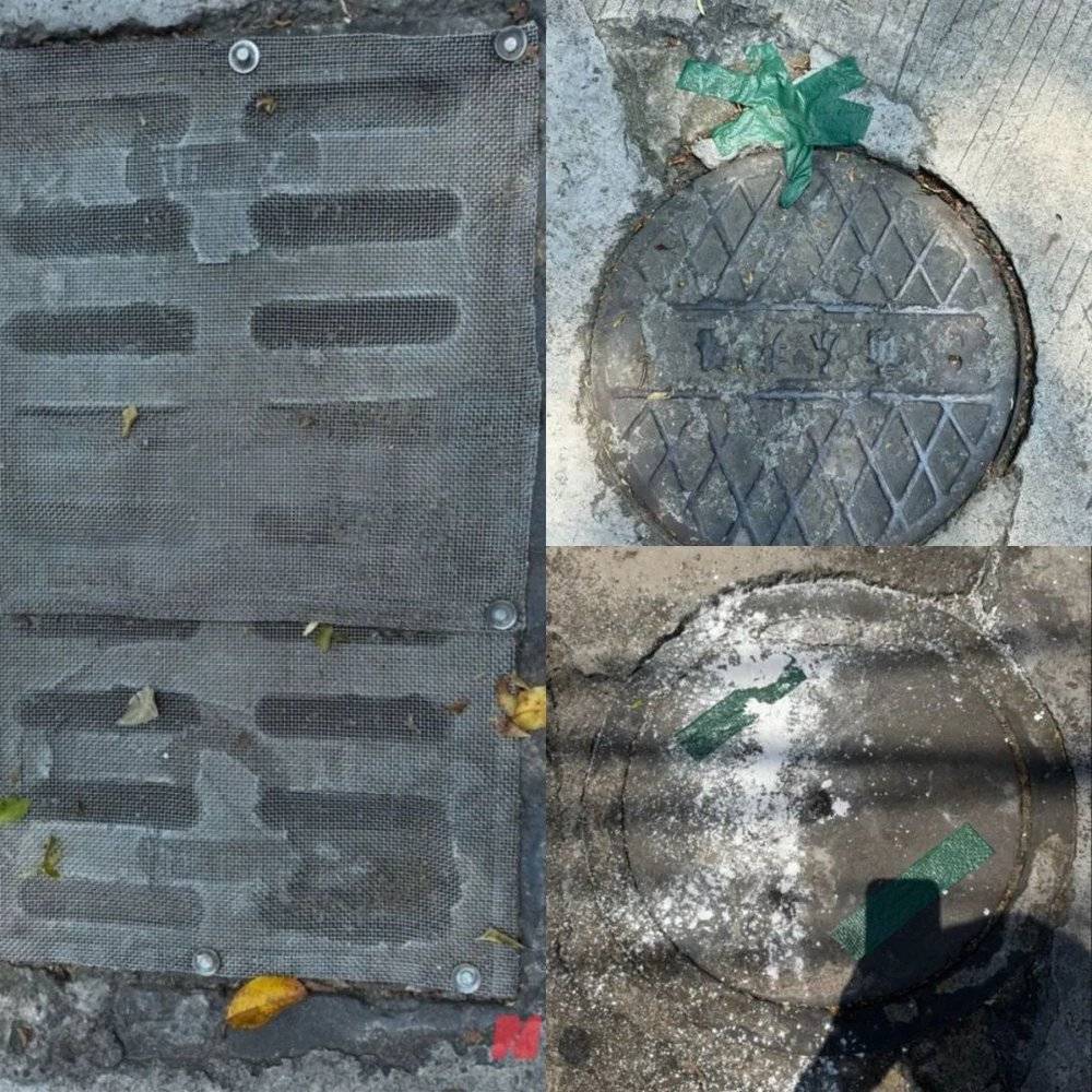 社区内下水井盖、排水沟加装了纱网和胶带图片来源:每经记者金喆摄