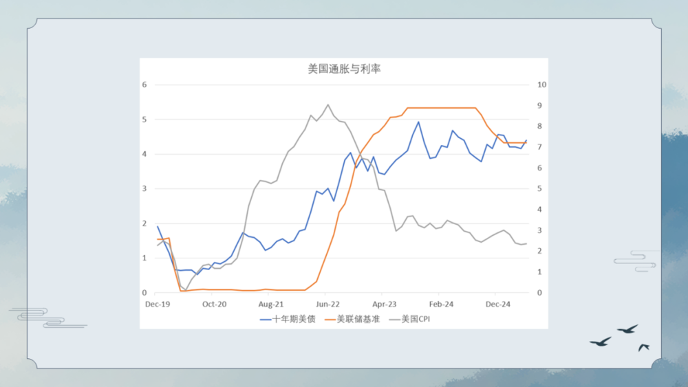 总之我们看到,新冠危机早就过去了,第一波通货膨胀高峰也早就过去了。但是发达国家的供给脆弱性仍在。甚至现在特朗普发动全球贸易战,也包含着解决供给问题的意图。这也就是为什么2024年美联储其实已经降息了一个点,美国的长期债券收益率却没有下降。因为以十年计,市场仍然担心供给侧风险。