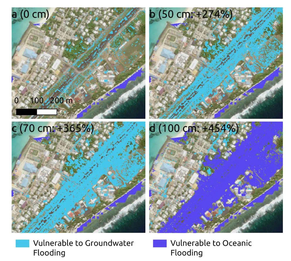 报告同时指出,按照这一推断,到2050年图瓦卢的大部分陆地面积及关键基础设施将低于平均高潮位。未来的海平面上升将加剧潮汐、波浪和风暴的影响,极大增加周期性洪水的频率和严重程度。