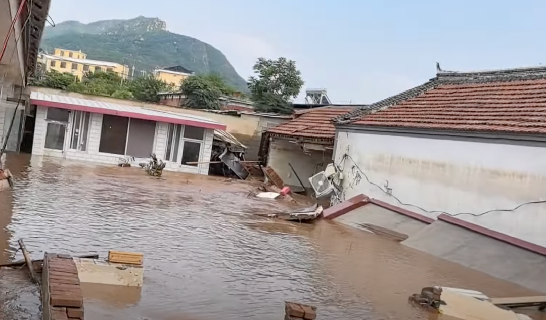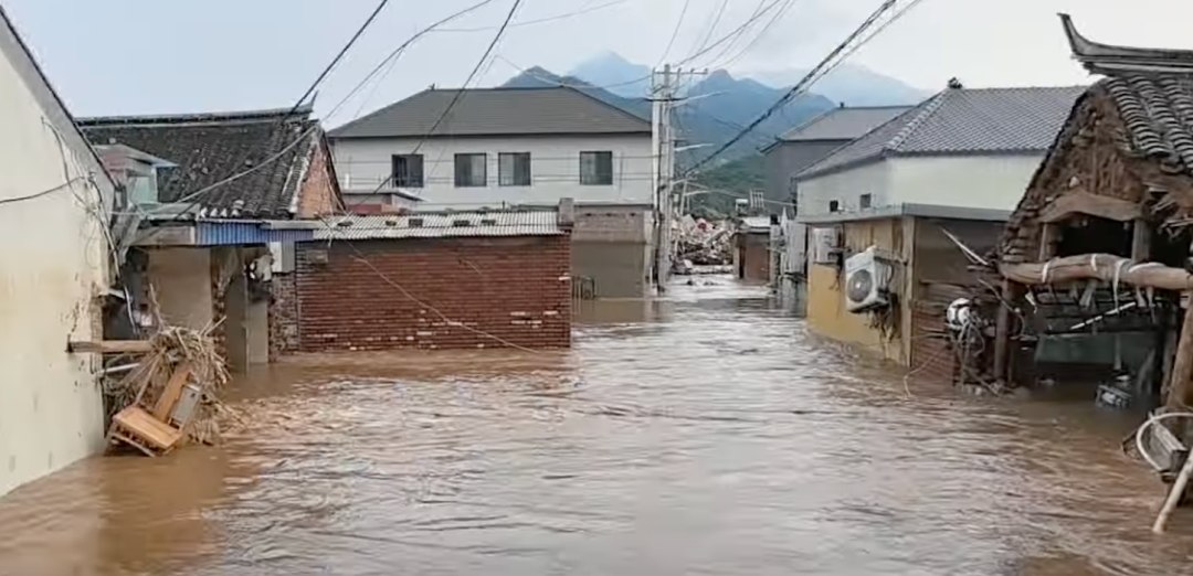 洪水侵袭的密云村庄,来源:中新视频