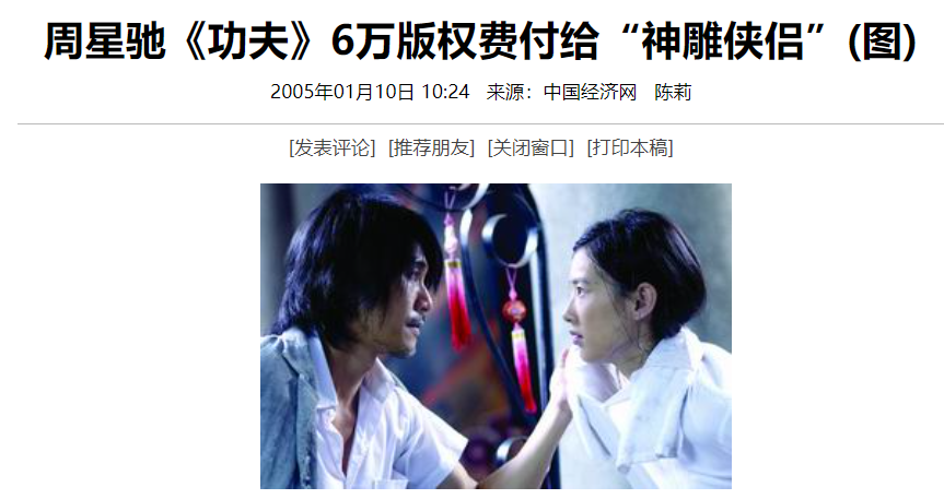 周星驰当年拍《功夫》时,仅仅在台词里提了一句杨过和小龙女,还专门付了一笔版权费给金庸。