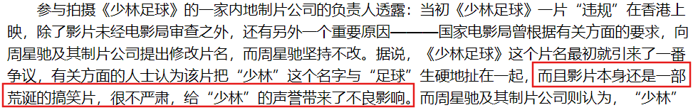 将少林寺娱乐化,才是导致《少林足球》无缘内地的主要原因。