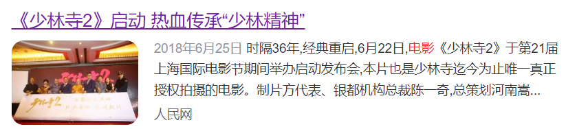 而且,跟“少林”两个字的版权费相比,损失的内地票房收入将更大。