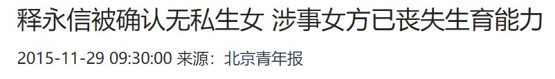 2011年、2015年,分别有人实名举报释永信在京有情人,在德有私生子。