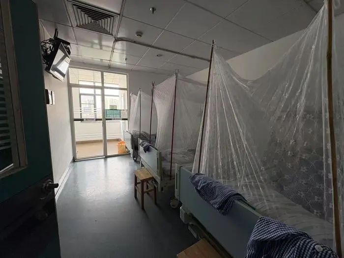 此外,界面新闻记者还走访了顺德区第三人民医院及乐从医院的感染隔离救治病区。界面新闻记者在两家医院住院部的感染隔离救治病区现场看到,病房均配备防蚊门帘或防蚊窗,走廊等区域放置蚊香和灭蚊灯,每张病床挂有蚊帐。医生与护士工作有序,患者情绪平稳,积极配合。